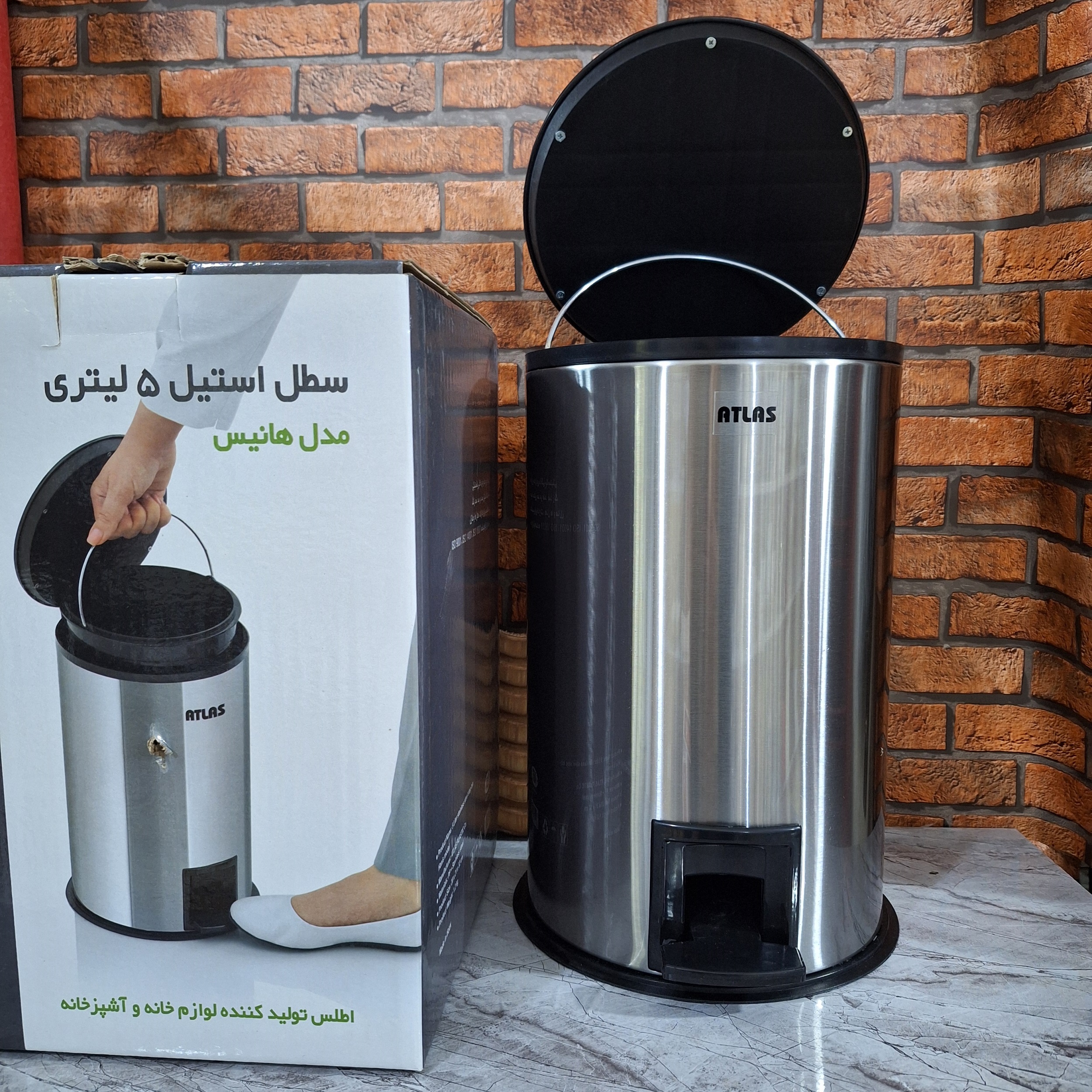 سطل زباله 5 لیتری استیل دوجداره اطلس مدل هانیس