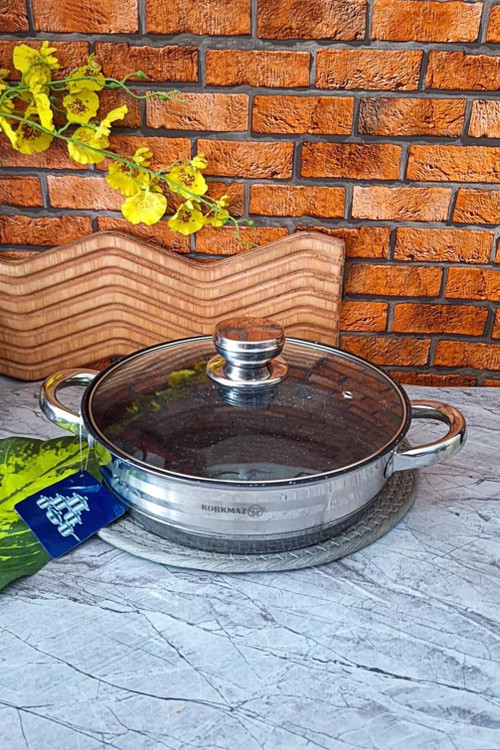 یک عدد تابه گریل دو دسته سایز ۲۴ ارتفاع ۶.۵ ظرفیت ۲.۹ لیتر